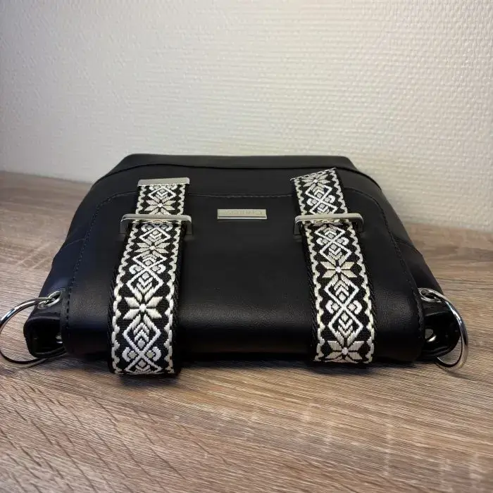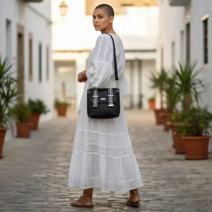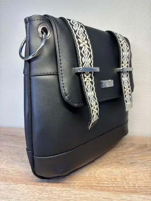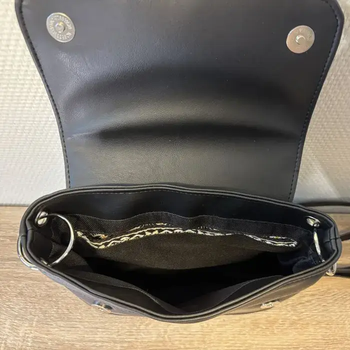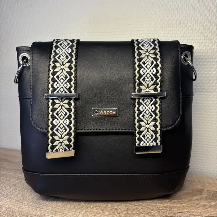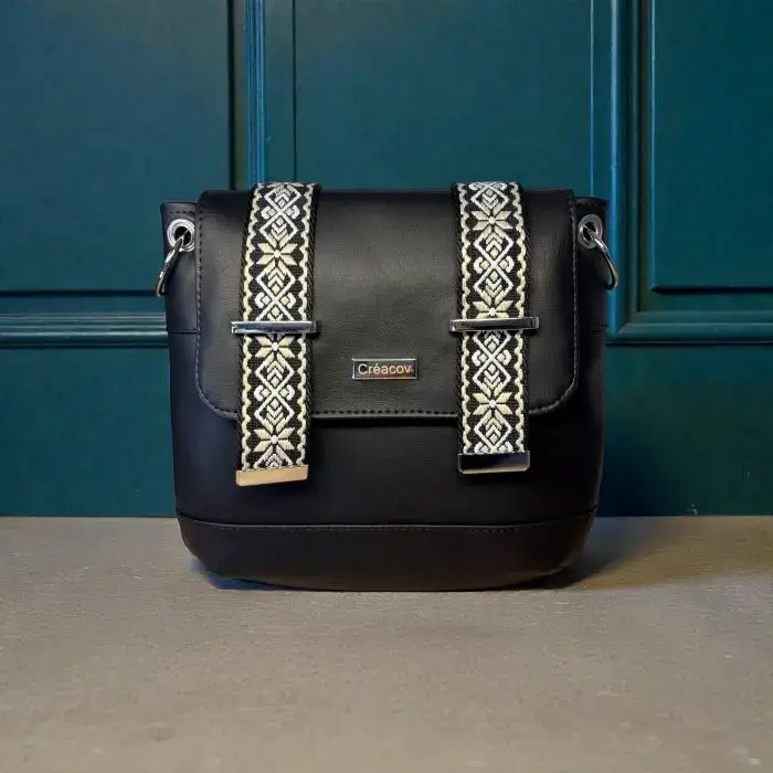 Création artisanale en cuir écologique, idéal à porter en bandoulière pour une liberté totale. Vous emportez l’essentiel dans ce sac qui se glisse facilement sous votre manteau sans aucune gêne. Intérieur spacieux et bien organisé.